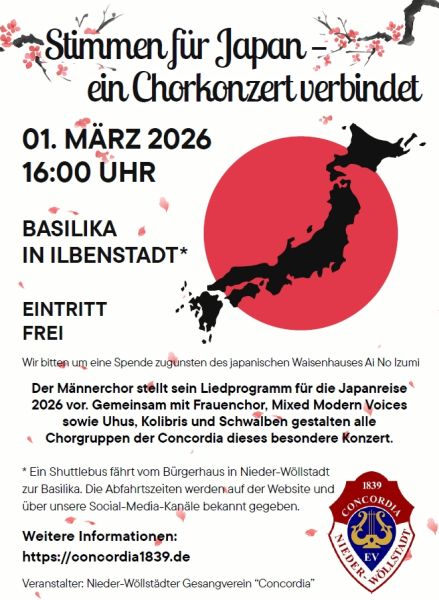 Am Sonntag, den 1. März 2026 um 16:00 Uhr, verwandelt sich die prachtvolle Basilika in Ilbenstadt in einen Ort der interkulturellen Begegnung. Unter dem Motto „Klangbrücke nach Japan“ laden alle Chöre der Concordia zu einem besonderen Konzerterlebnis ein.